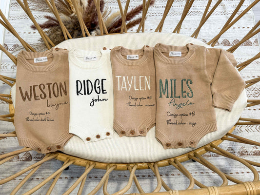 Embroidered Cotton Knit Newborn Romper: Personalized Baby Outfit