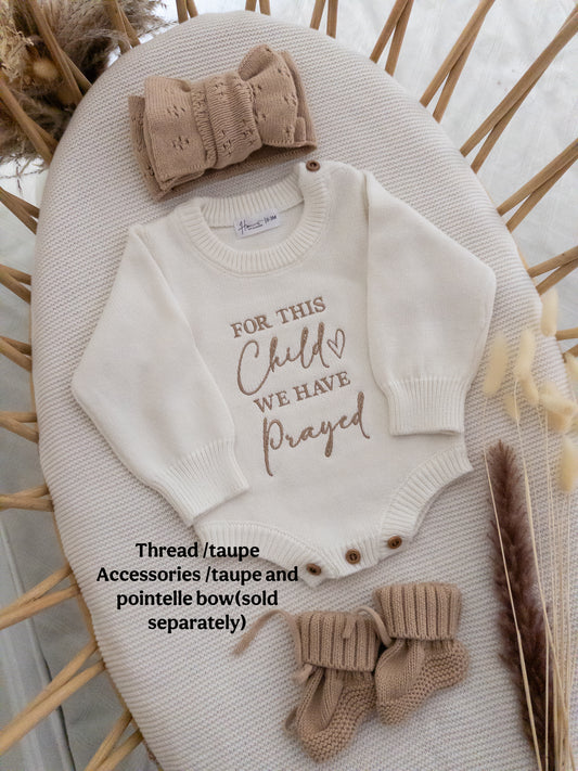 Embroidered For This Child We Have Prayed Knit Romper