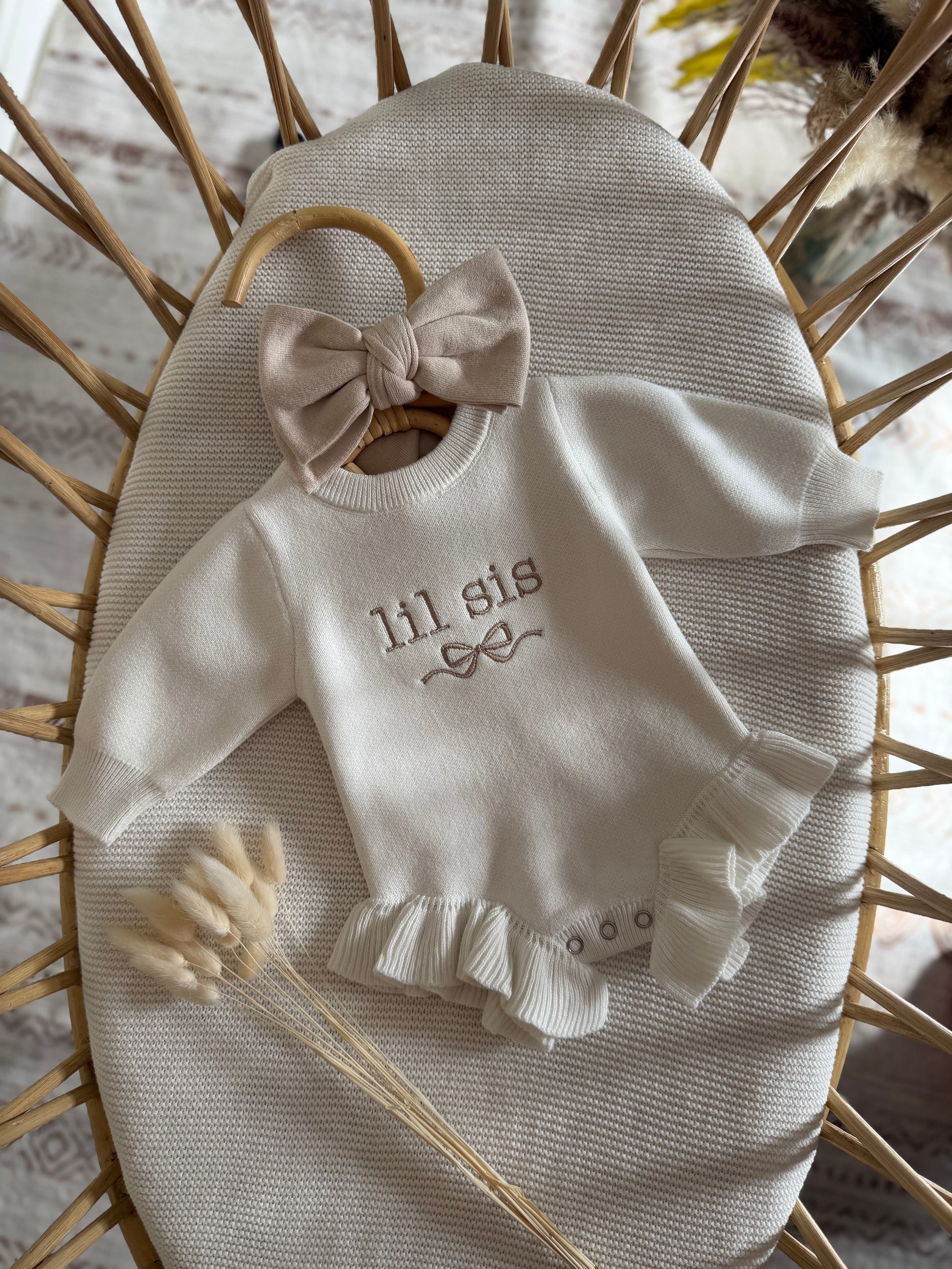 Wrap your little love in comfort with our ‘Lil Sis’ Embroidered Knit Romper.